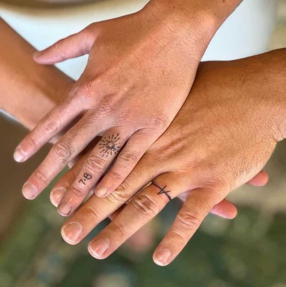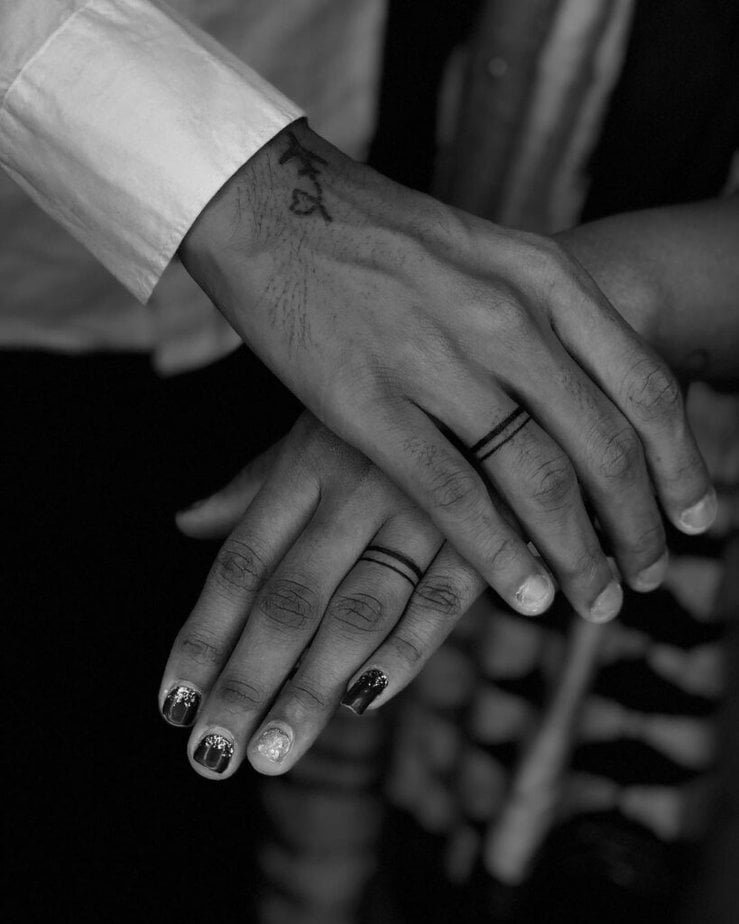 If you're sentimental about anniversaries, Roman numerals on your ring finger are quietly romantic. It's simple, timeless, and hey — it's a pretty foolproof way to make sure your partner (and you) never forget the date. Subtle but meaningful.