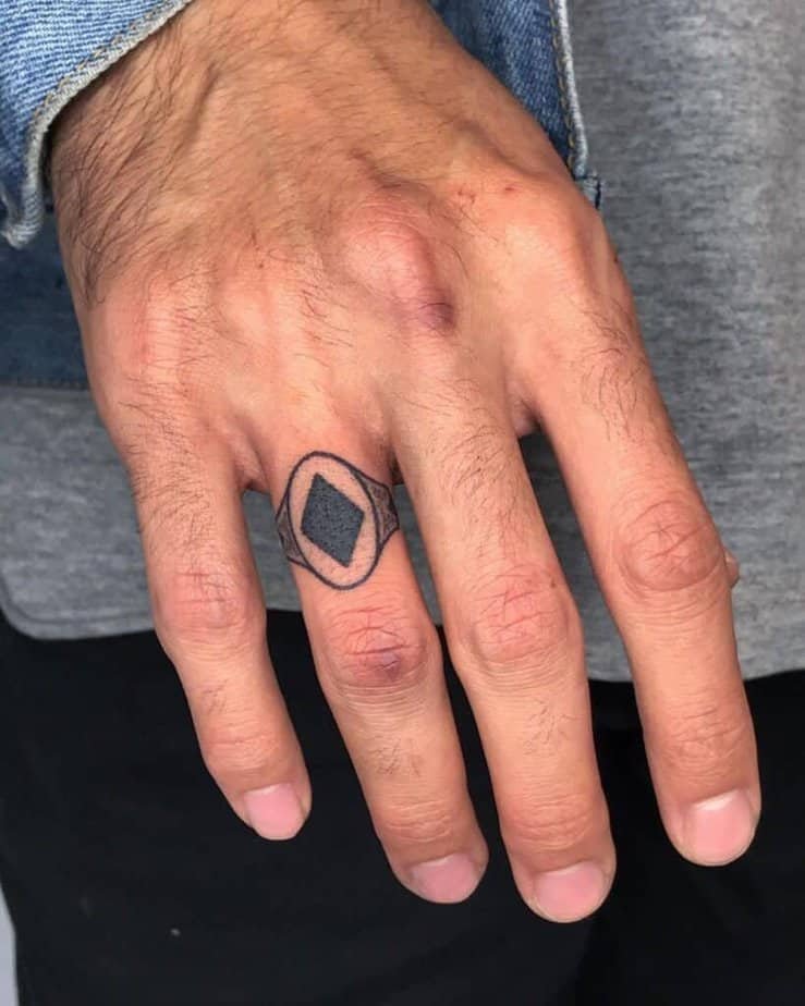 Tiny sparkle: a sparkle tattoo on the ring finger