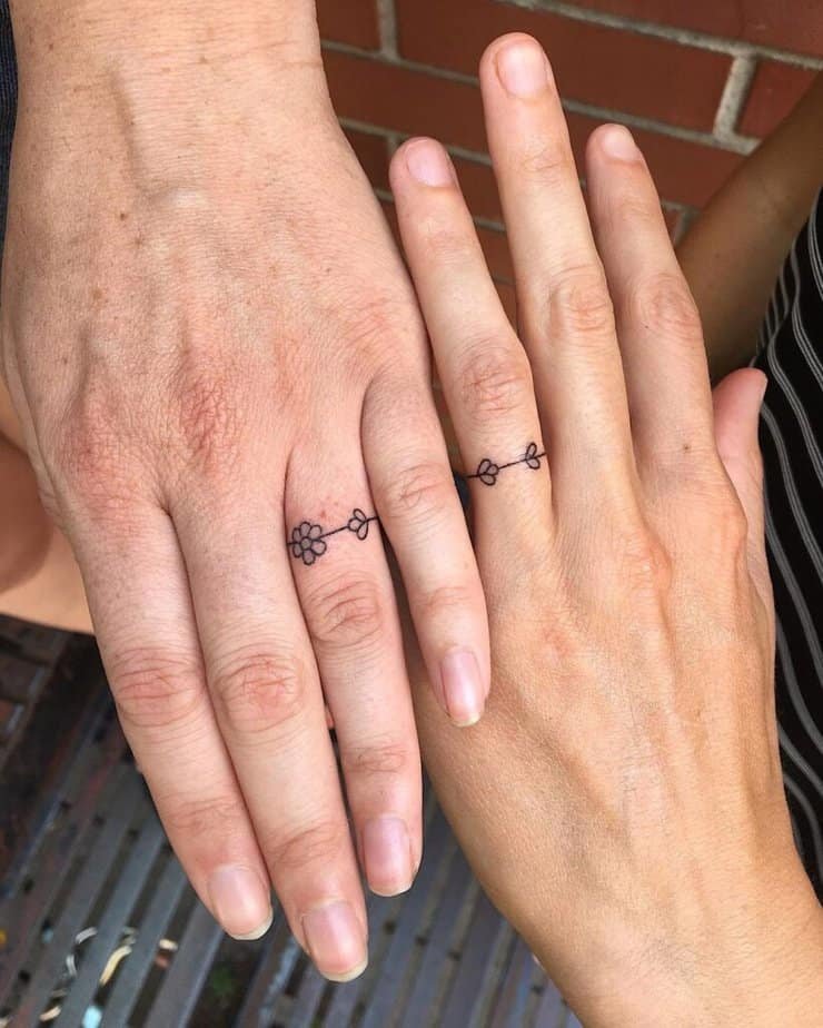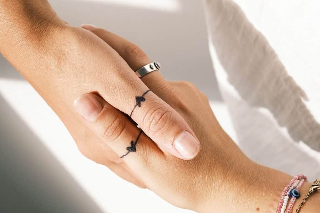 Ending with a sweet one — heart ring tattoos are perfect for BFFs or anyone who wants to celebrate a friendship. Tiny hearts on thumbs or ring fingers feel playful and meaningful without taking themselves too seriously.