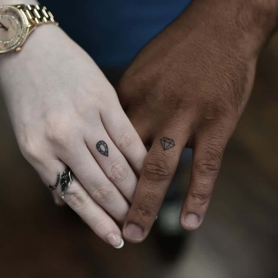 For couples who adore bling but would rather not pay a mortgage for it, gemstone tattoos are a playful alternative. They give you that diamond-ish vibe without the purchase stress, and the designs can be as simple or ornate as you want — tiny facets, little settings, a pop of shading to catch the eye.