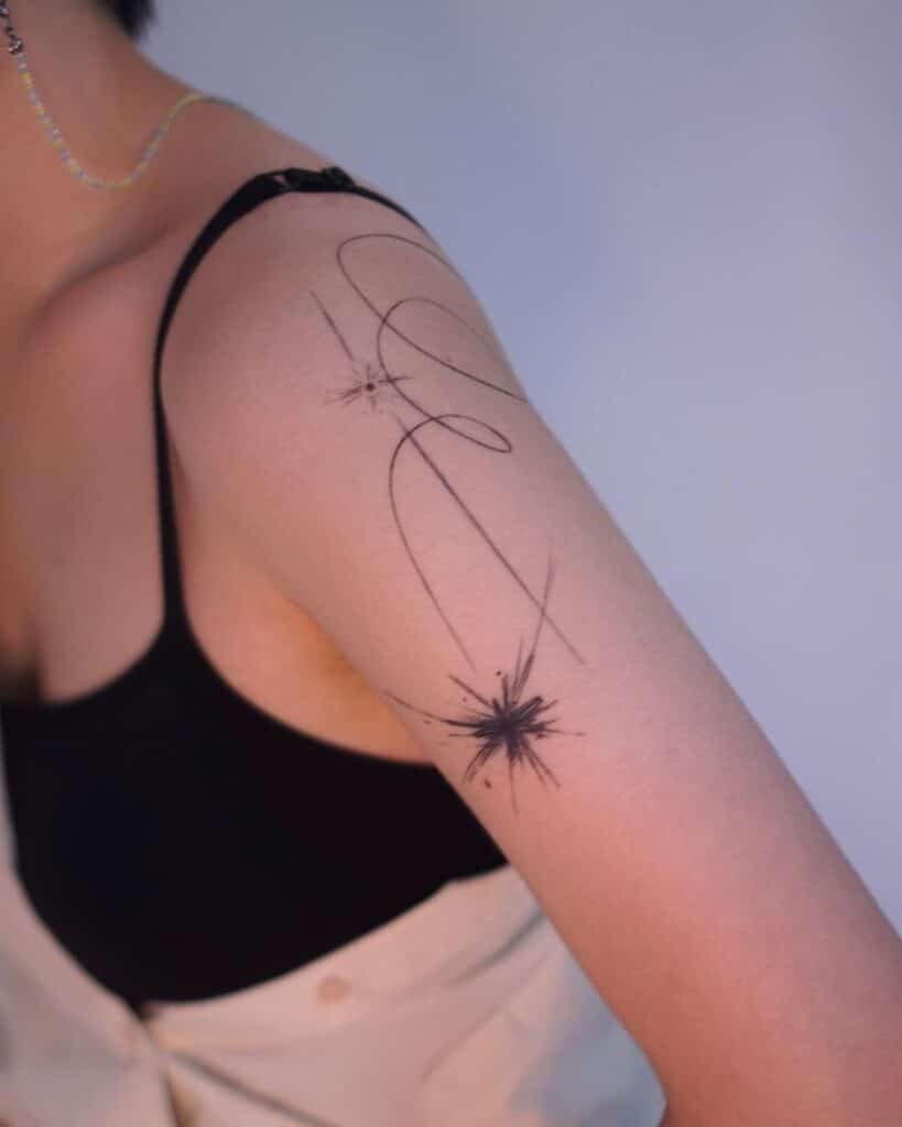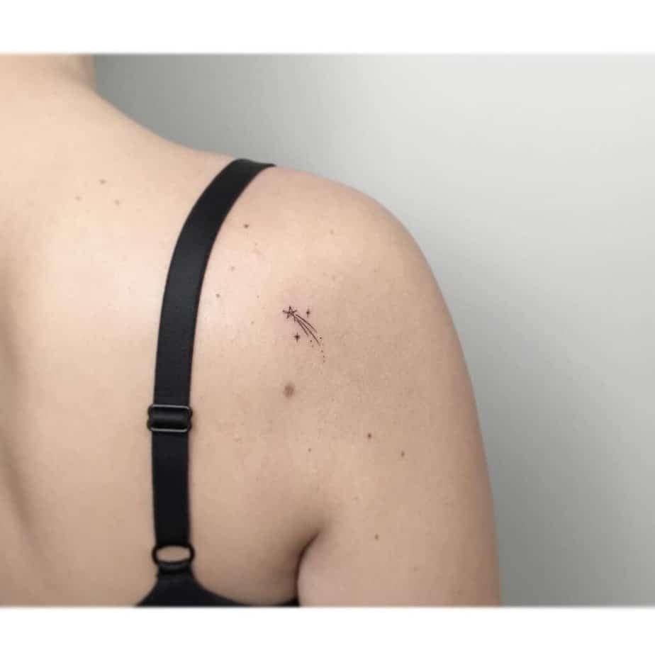 Upper arm tattoos are forever popular, and for good reason. They’re visible without being loud, they age well, and a shooting star there just reads like a timeless little reminder: keep reaching.