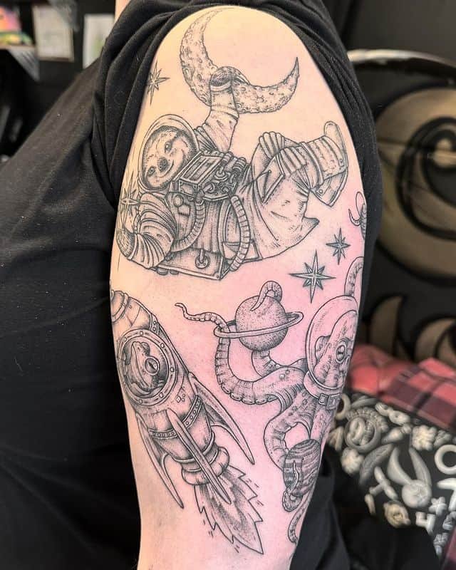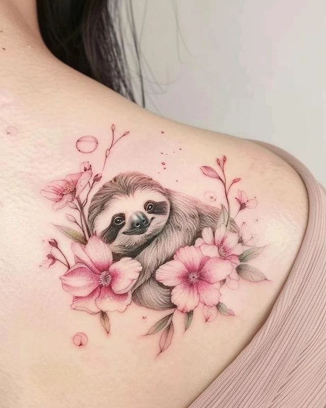 Honestly, sloth tattoos are the cutest little life lessons. Whether they’re curled up with flowers, floating among planets, or wearing pearls, each design carries that same gentle message: slow down, notice the good things, and be kind to yourself. If you’re thinking about getting one, pick the vibe that makes your chest feel warm — whimsical, tender, minimalist — and let it remind you, every day, that life doesn’t have to be a race.