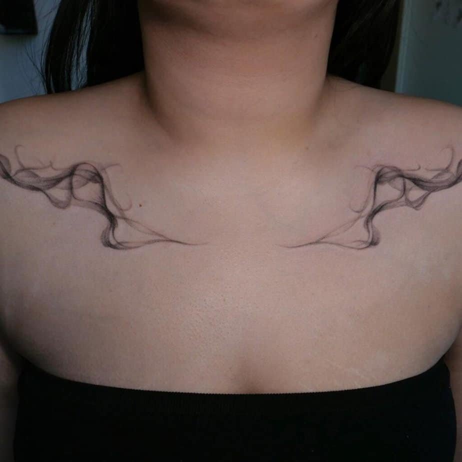 Collarbones are such a flattering spot, and small, balanced smoke tattoos there are so satisfying. They accentuate your natural lines without stealing the show.