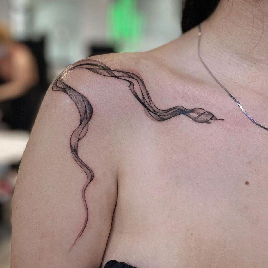 One thing I love about smoke tattoos is how they emphasize curves and muscle lines. On the shoulder and arm they feel like they were made for the body, not just slapped on it — graceful and intentional.