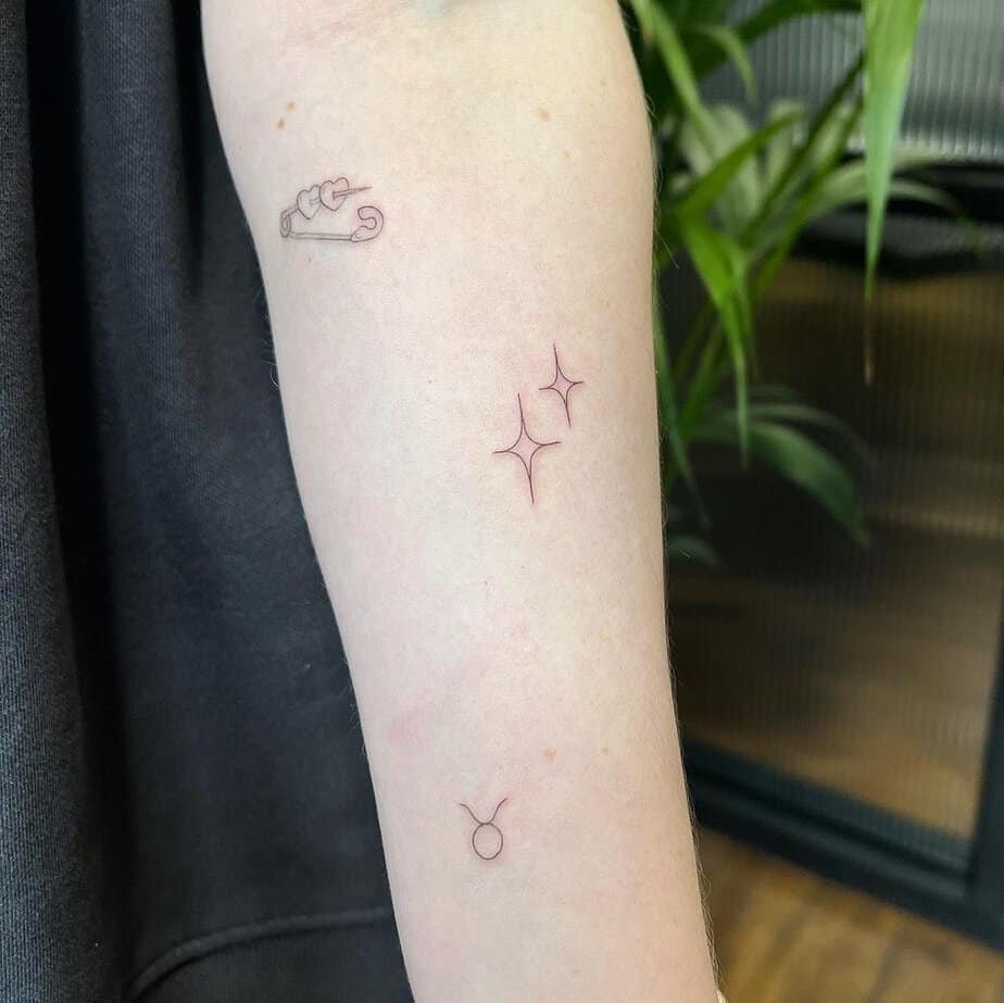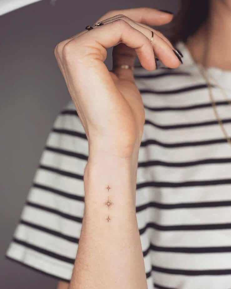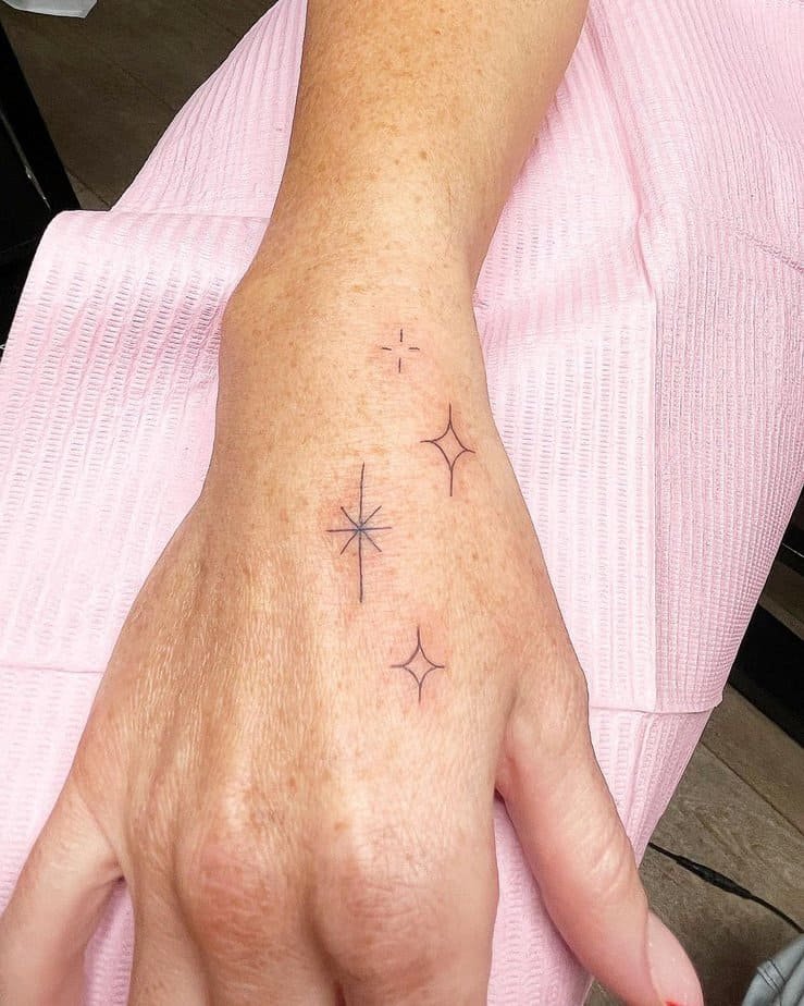 Wrist tattoos are lovely because they’re small, simple, and easy to show off when you want. A few tiny sparkles here are playful and won’t overwhelm your vibe — just a little glint that catches the moment.