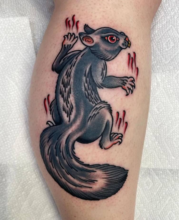 For those who love loud color, this neon squirrel in pinks, purples, oranges, and blues is a joyful blast. It reads as energetic and optimistic — like a tiny party on your skin.