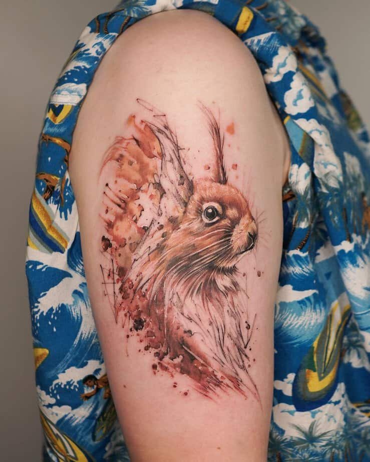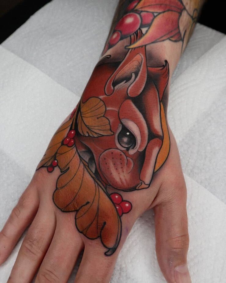 If small and sweet is more your speed, this chibi-style squirrel on the forearm is a winner: tiny, colorful, and full of mischief. The sparkle in its eyes gives it personality, and it’s the kind of small piece that brings a little joy every time you see it.