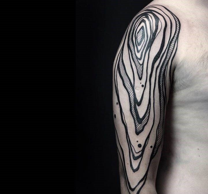 This sleeve focuses on circular, concentric lines that are hypnotic more than loud. The negative space balances the depth, and the curves sit perfectly with the arm’s bend, giving off a topographical, otherworldly energy. It’s sculptural but soft — like geography for your skin.