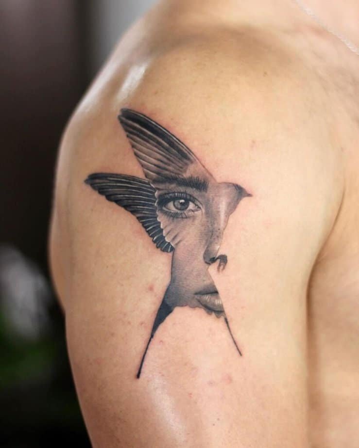 This one’s for people who like their tattoos to be a little mysterious. From one angle it’s a bird; from another, it hints at a face. It’s playful and thoughtful.