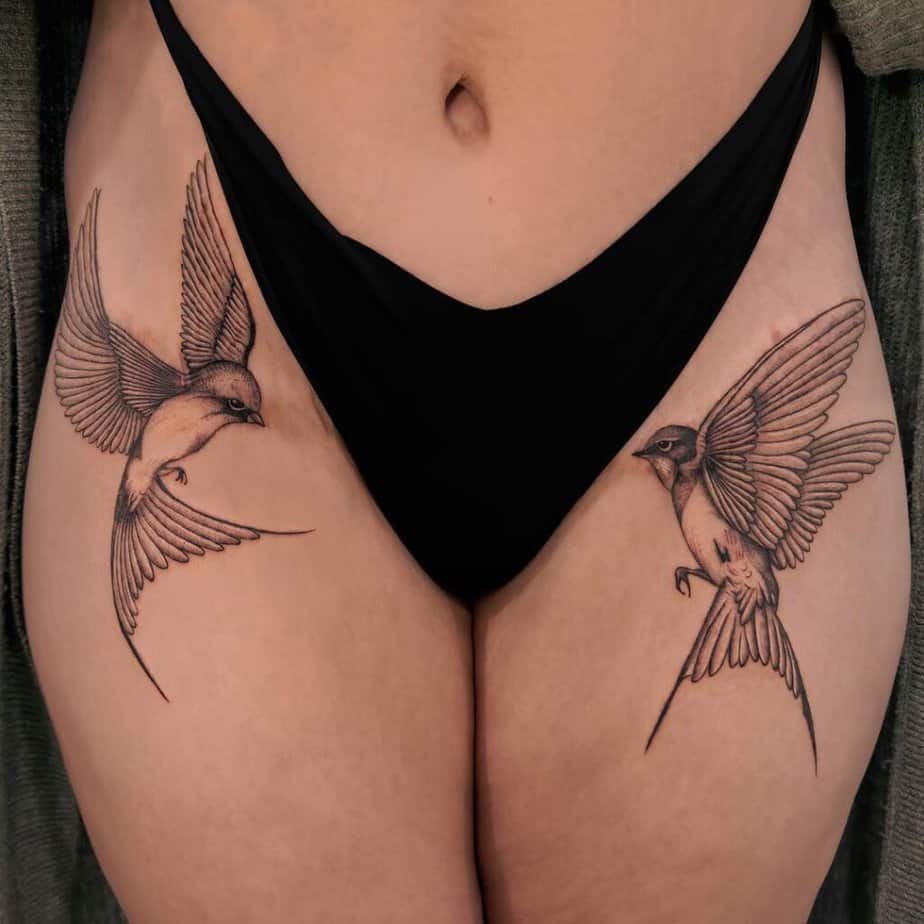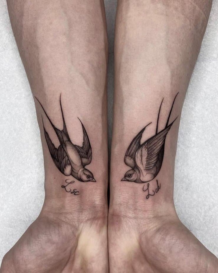 If you want something minimal or a little matching ink, tiny swallows are adorable and discreet.