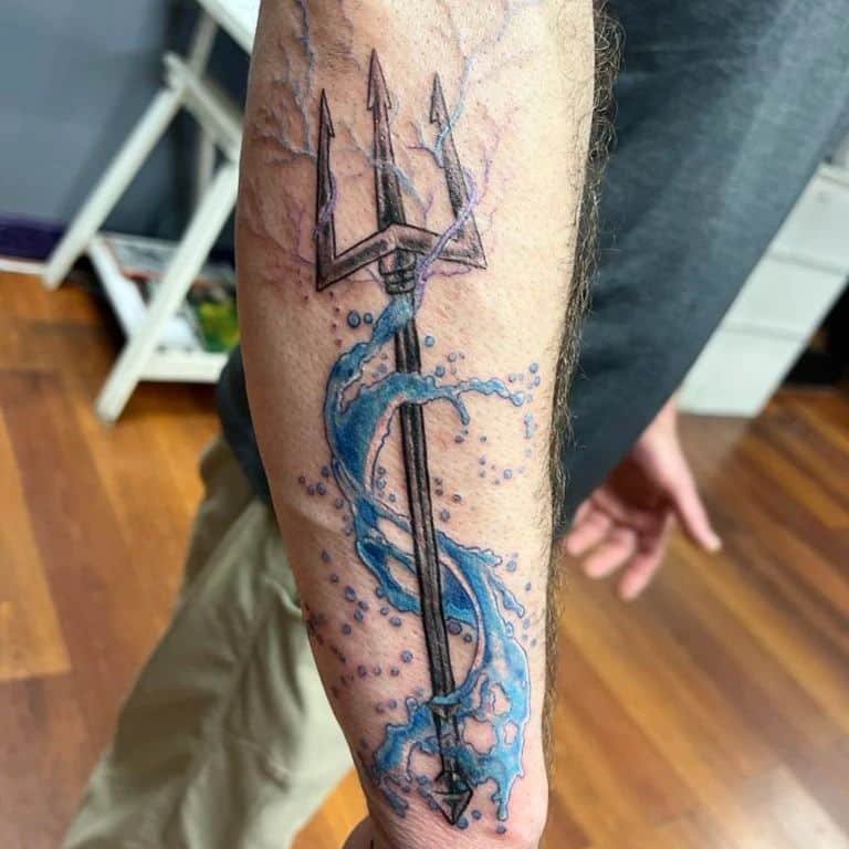 Black and gray are forever, but color can make a trident pop in ways you might love — think colorful waves or jewel-toned accents that give your mythic symbol a more personal, playful look.