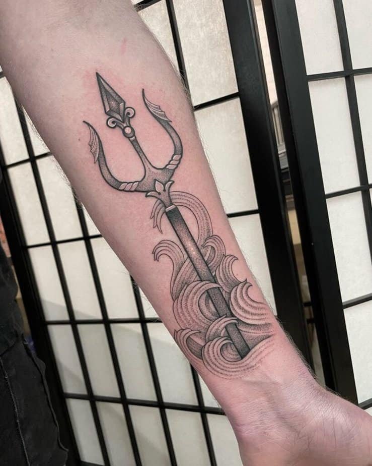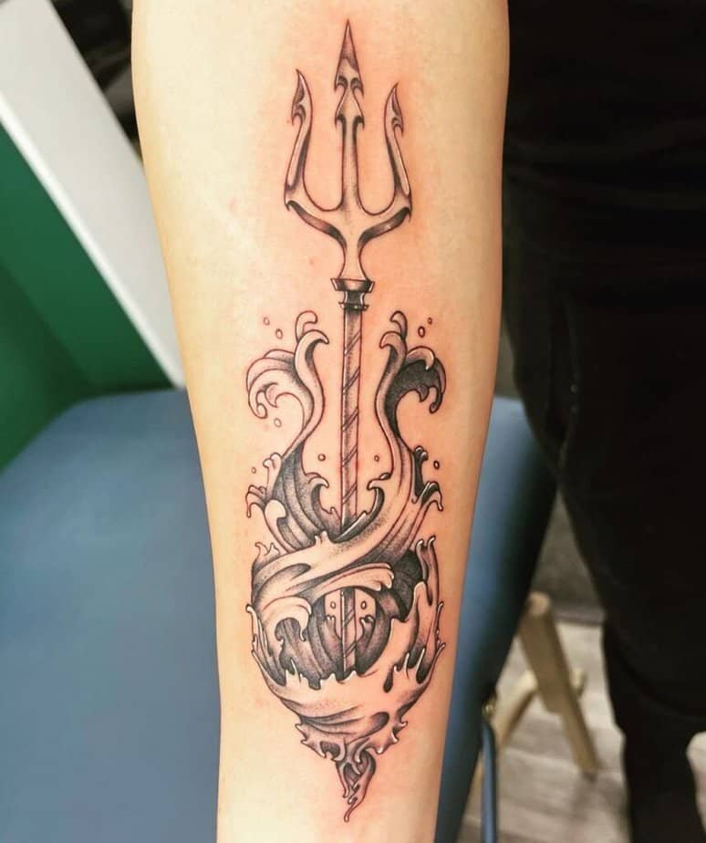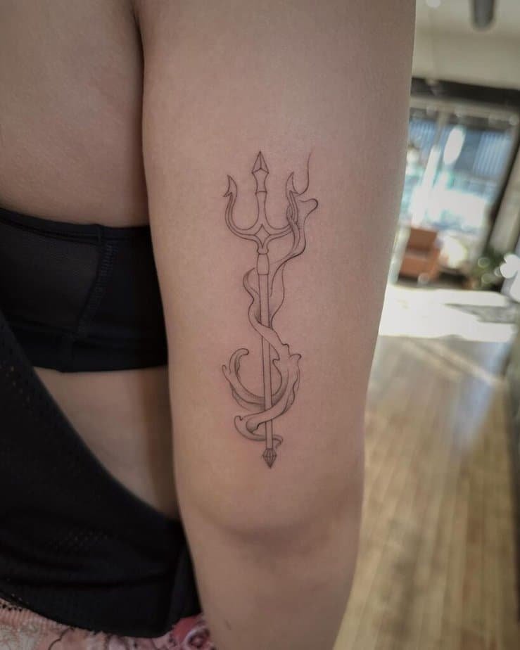 If heavy blackwork isn’t your jam, try fine-line, dotwork, or gray wash. Those approaches keep the trident understated and elegant, like a soft nod to mythology rather than full-on armor.