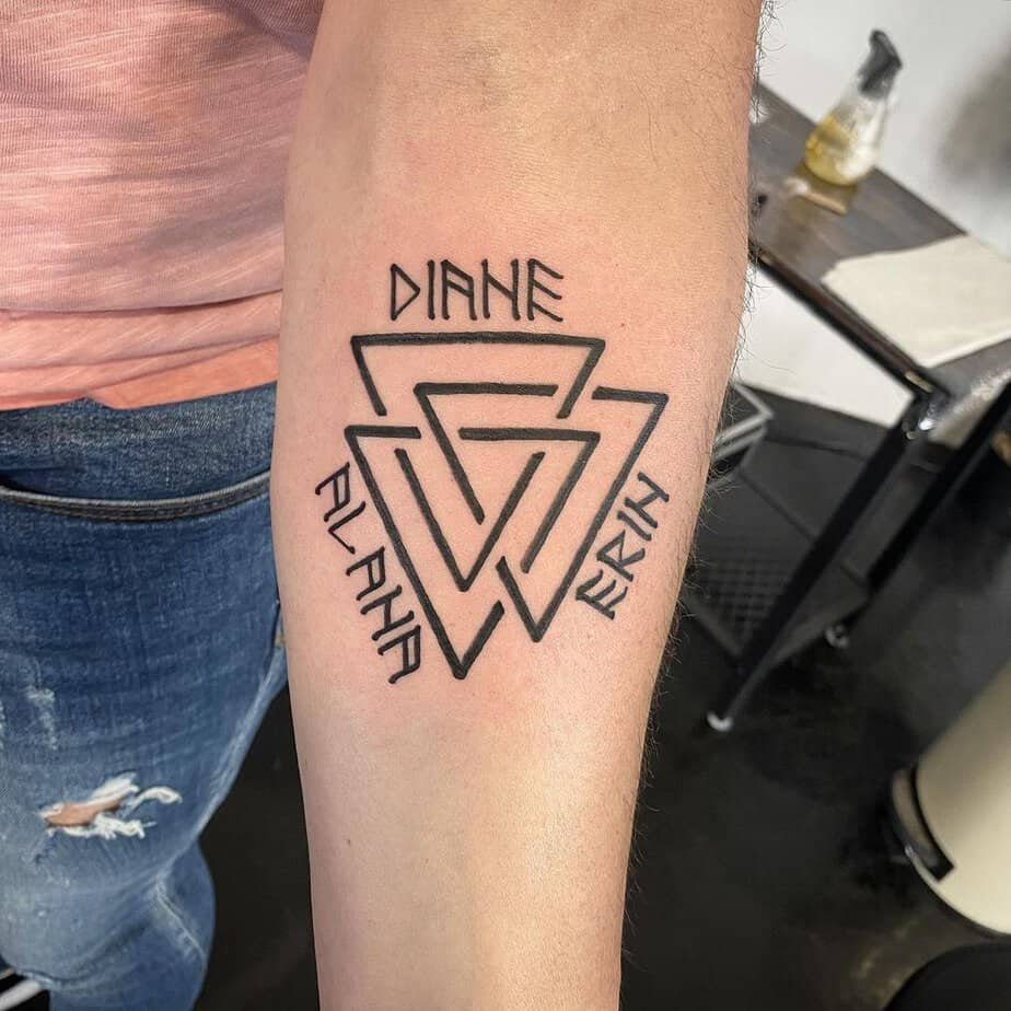 If you want to honor someone close, putting their name into the Valknut composition blends affection with strength. It keeps the sentiment personal while maintaining that bold, mythic look.
