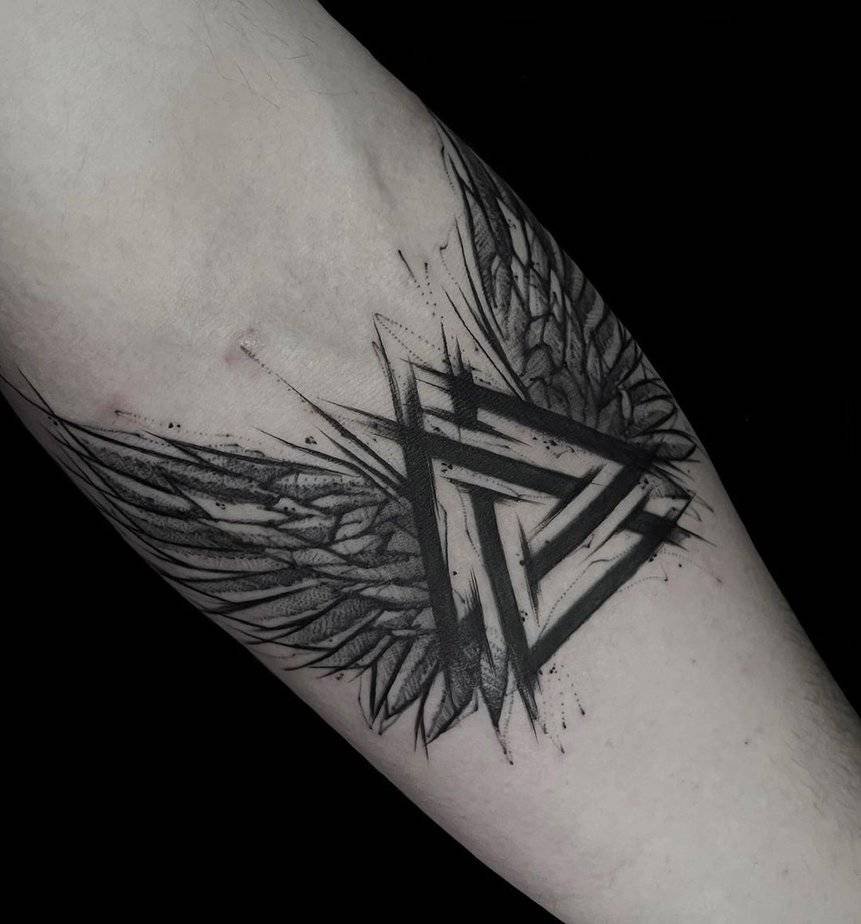 Add wings and the Valknut suddenly looks like it belongs to the gods. The divine vibe is amplified by dark, detailed ink, giving the whole piece an ethereal, powerful feel — like something that could lift off at any moment.