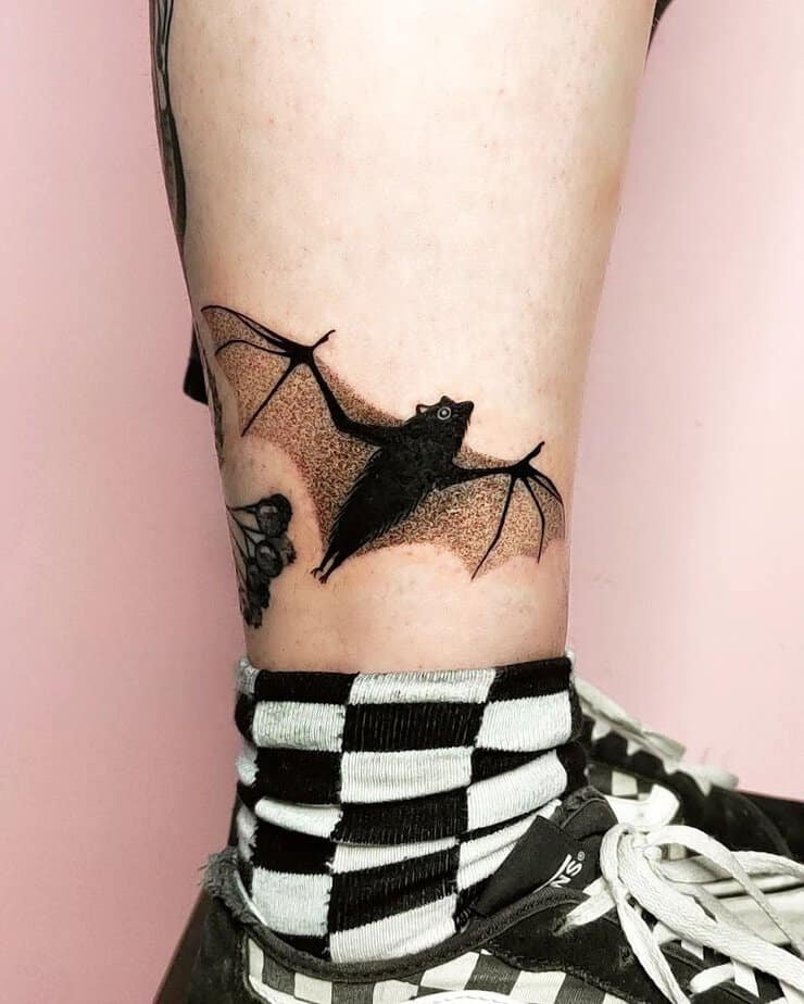 Bat ears, bright colors, and a fierce look — this design balances whimsy with dark aesthetics. It’s great when you want your tattoo to feel playful but still rooted in nocturnal mystery.