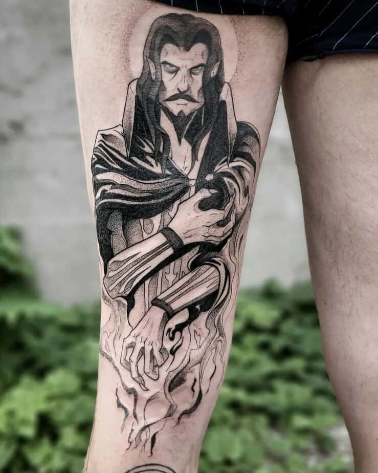 If you want something regal and intense, Alucard’s vibe is everything — piercing eyes, flowing hair, very dramatic energy. It reads elegant but dangerous, which is great if you want your tattoo to look like it belongs in a gothic painting rather than a flash sheet.