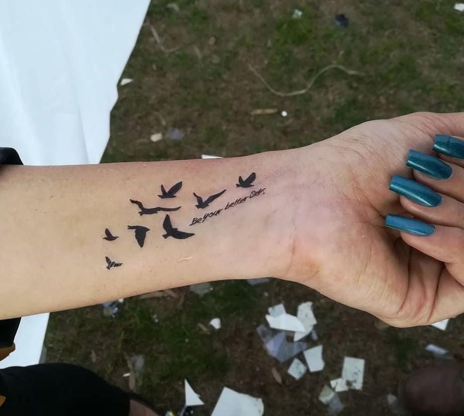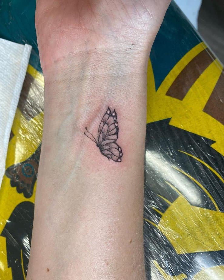 Butterflies on the wrist always feel poetic — grace, freedom, and change all wrapped into one delicate image. Mid-flight wings on your skin are a soft celebration of how we grow and adapt.