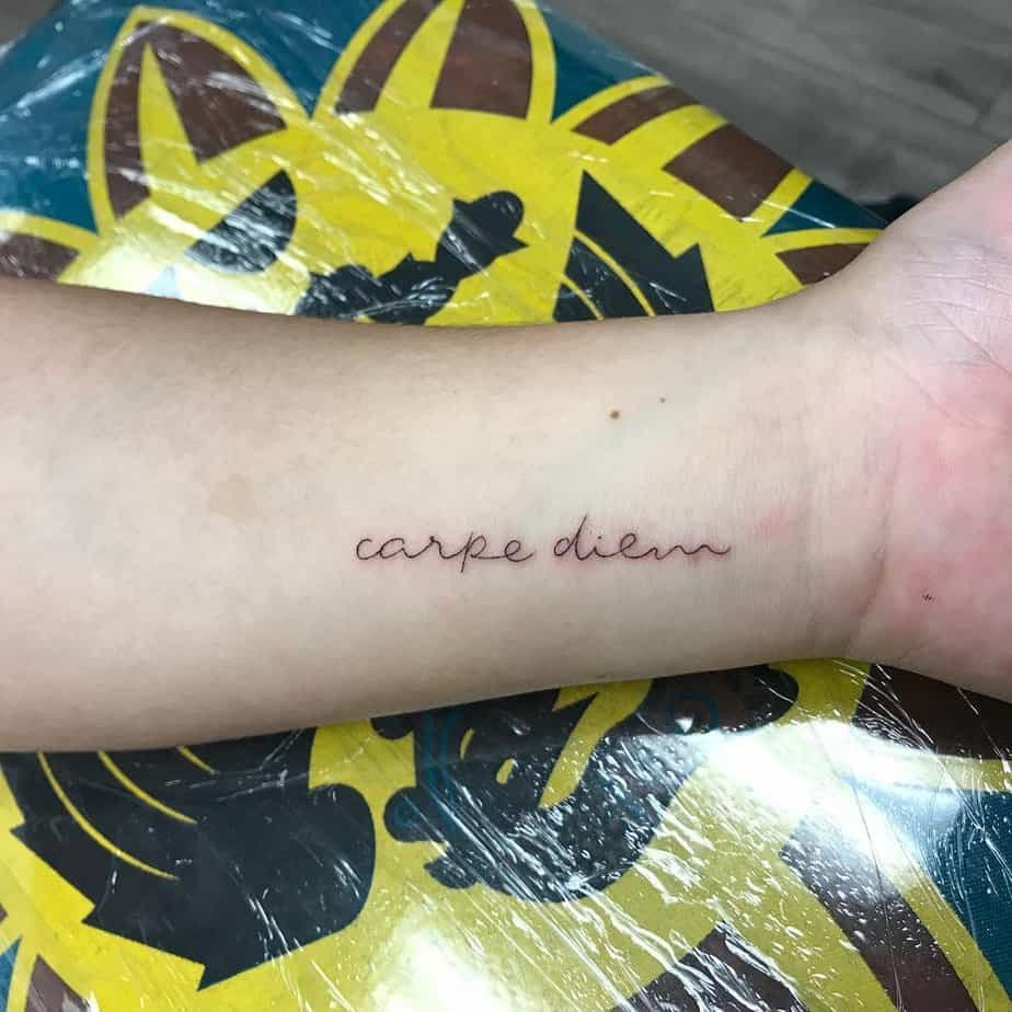 Short, sweet, and a little cinematic: the words ‘carpe diem’ on your wrist are that daily nudge to live fully. It’s small but carries a big sentiment — kind of like a motivational post-it, but forever.