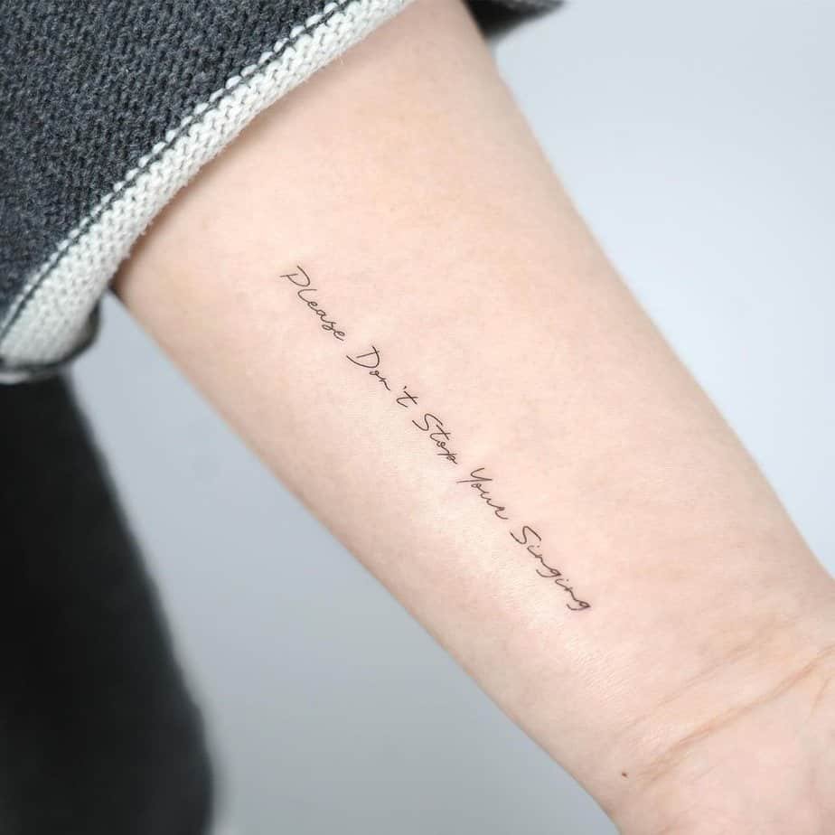 A tattoo that literally tells you to keep singing — metaphorically or literally — is a sweet, fierce reminder that you can get through hard days and still find rhythm and joy. It’s hopeful and strangely comforting.