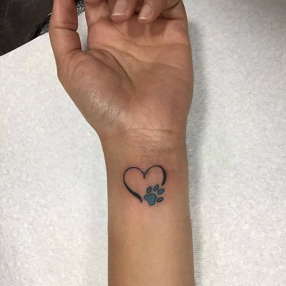 A heart in blackwork with a tiny blue paw tucked inside? That contrast is adorable and meaningful. It reads like a little love letter to a pet or to the people who make your heart feel full.