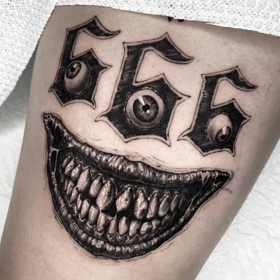 Want to make a basic 666 feel more personal? Surround it with a heart-shaped barbed wire. It’s a simple add that gives the piece edge and a bit of romantic tension, kind of poetic in a weird way.