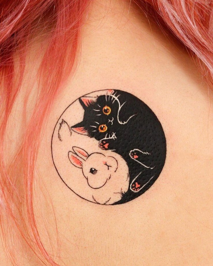Tiny, adorable, and surprisingly meaningful — a black cat and a white rabbit curled into a yin-yang circle. It’s playful but also a sweet reminder that opposites can balance each other out. Plus, cuteness overload.