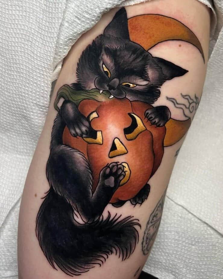 13. Halloween forever: cat with a jack-o’-lantern