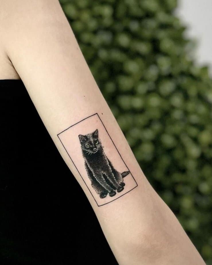 There’s something so mischievous about just seeing a pair of curious cat eyes peeking out. Minimalist but full of personality, this design focuses on expression — tiny, subtle, and instantly memorable. It’s a great conversation starter and super cute if you like understated tattoos with character.