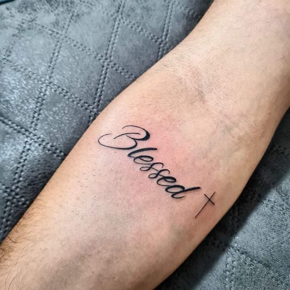 A representation of your faith can be a quiet, steady anchor — and the word "blessed" does that job so well. I think of it like a little nudge on days when everything feels heavy: a reminder that something bigger is at work and you’re not walking this alone. You don’t have to carry the past with you; a tattoo can be a small ritual of letting go and trusting the next chapter.