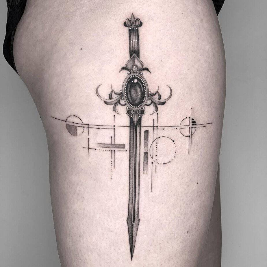 If you’re into patterns, try a geometric garter. Go random for visual intrigue or pick shapes that mean something to you, then throw in a dagger with a big gem for extra drama. It’s modern, mysterious, and kind of magnetic.