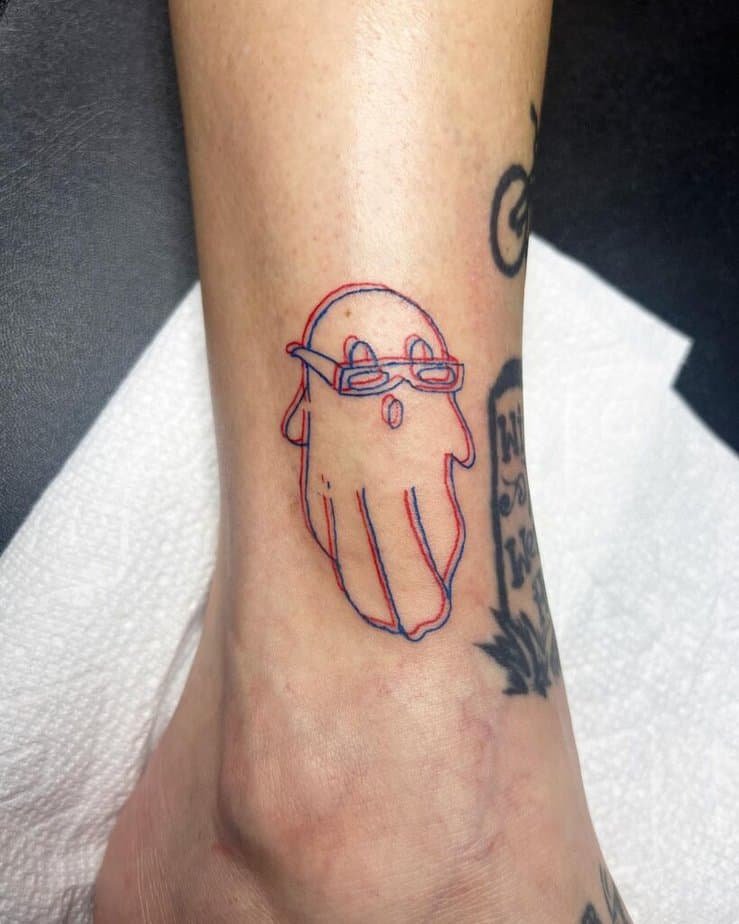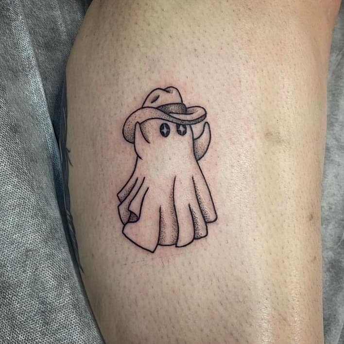 Okay, starting easy because sometimes less is just right. This fine-line ghost is the sort of little companion you can tuck behind your ear or on your wrist — quiet, sweet, and low-key. If you’re not into bold, colorful pieces, this kind of delicate outline might be exactly your vibe.