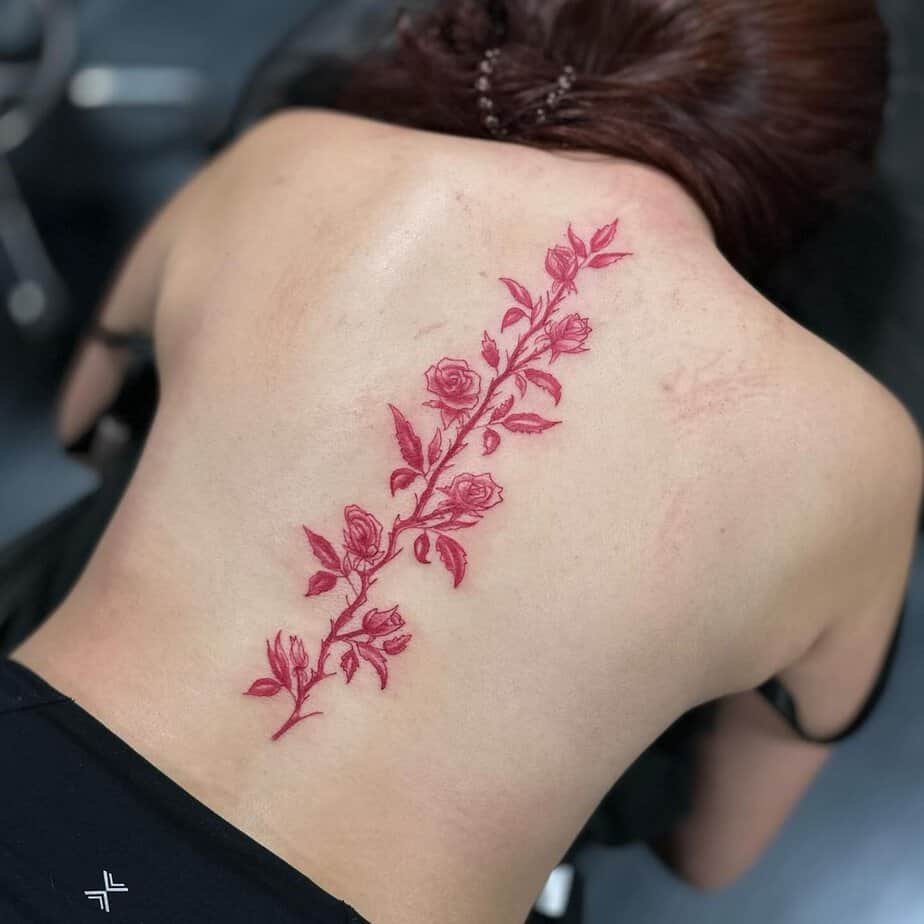 Flowers married to vines are one of my favorite combos because the vines can tuck behind petals and still be the backbone of the piece. Sometimes the vine is darker to create contrast so the blooms get their own moment, and other times the flowers cluster for a more maximal look without covering your whole back. You can choose large blooms with more negative space or smaller, super detailed flowers where the vine still peeks through — either way it reads romantic and intentional. And if you don’t want roses, that’s cool; scattered floral motifs with thicker vine lines can push the vine to the foreground and feel earthy and bold.