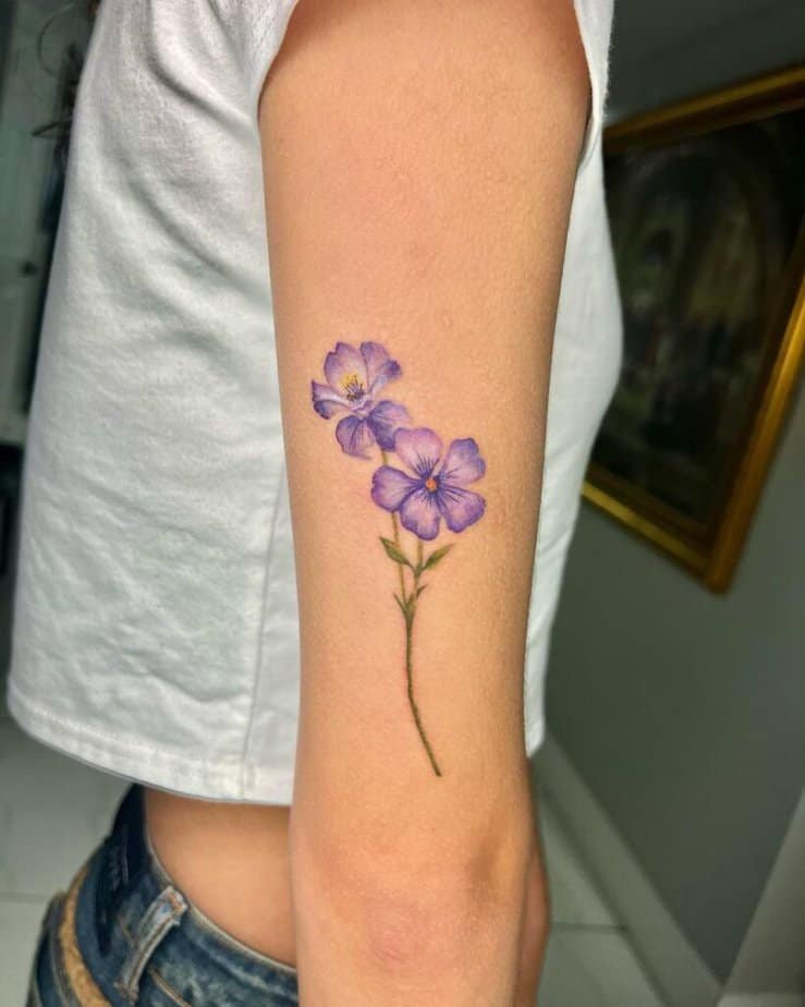 Let’s kick things off simple: a straightforward violet that shows off the flower’s natural charm. It’s the kind of tattoo that fits any style — small, pretty, and no drama. If you want something timeless and sweet, this is a lovely starting point.