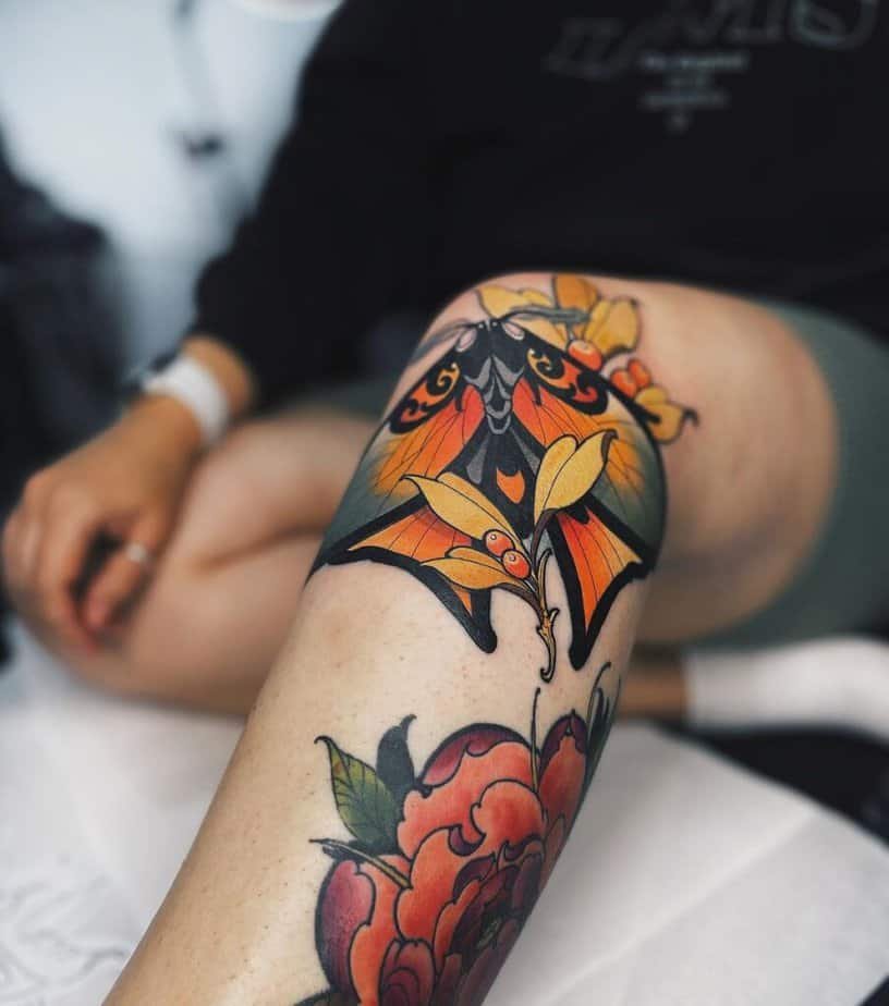 Knees, thighs, shins — these spots can turn into true canvases if your artist is up for it. A moth tucked under the knee is playful and creative, and it looks amazing in motion.