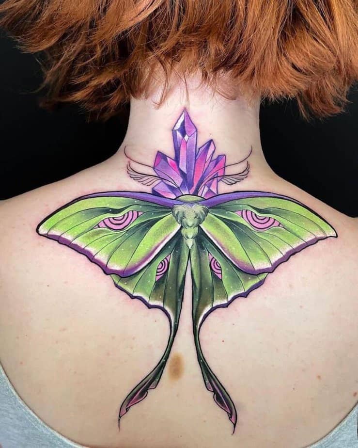 Realistic pieces take time, but they’re worth it if you want that cinematic, lifelike effect. A death moth across your back reads as dedication to craft and symbolism all at once.