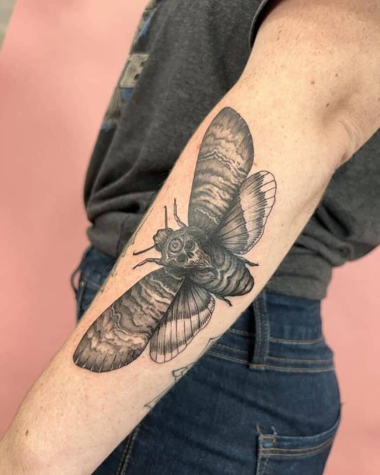 You can’t really go wrong with a simple moth on the forearm. It’s the kind of piece that works whether it’s your first bug tattoo or one more in a growing collection of creepy-cute creatures. It’s visible, easy to show off, and still subtle enough to feel personal.